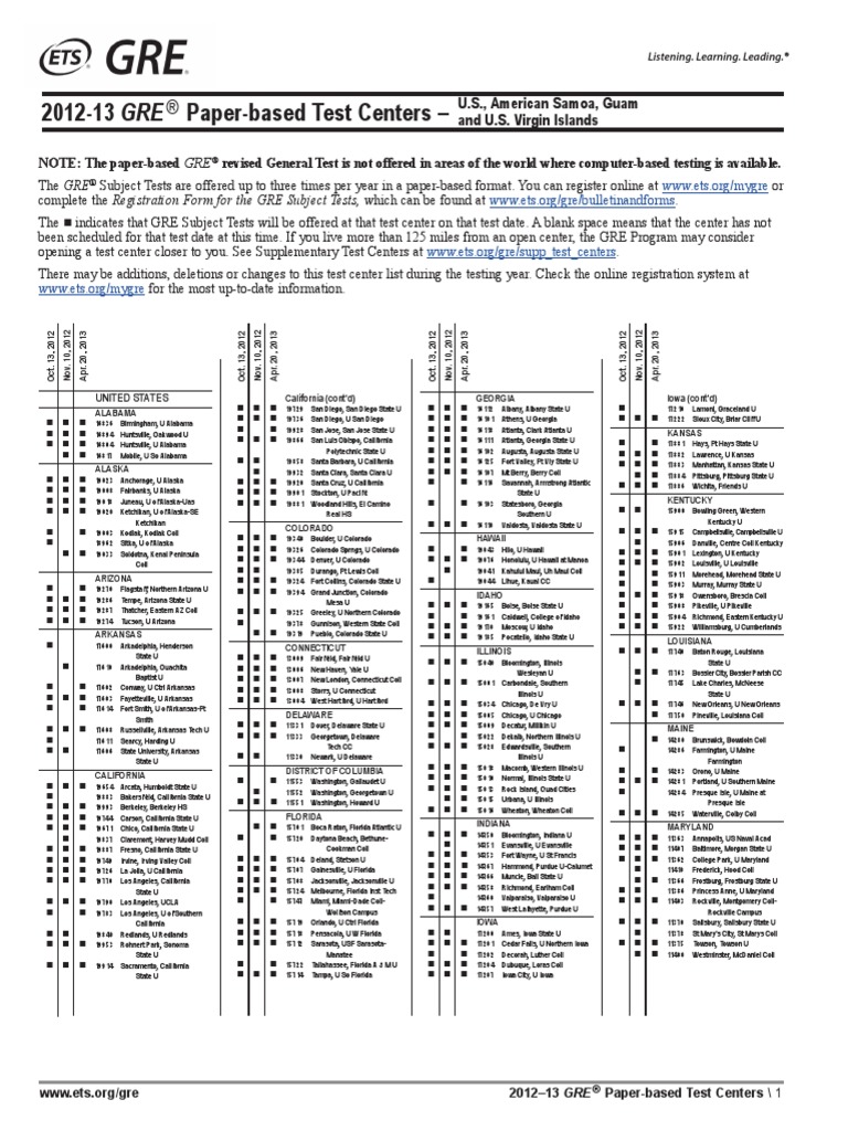 Gre Test Center And Code Lists Pdf Free Download