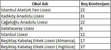 Istanbul özel Okul Kontenjanları