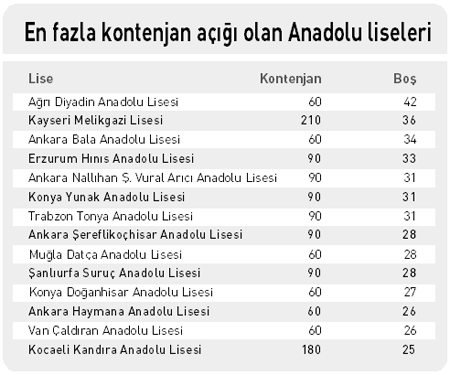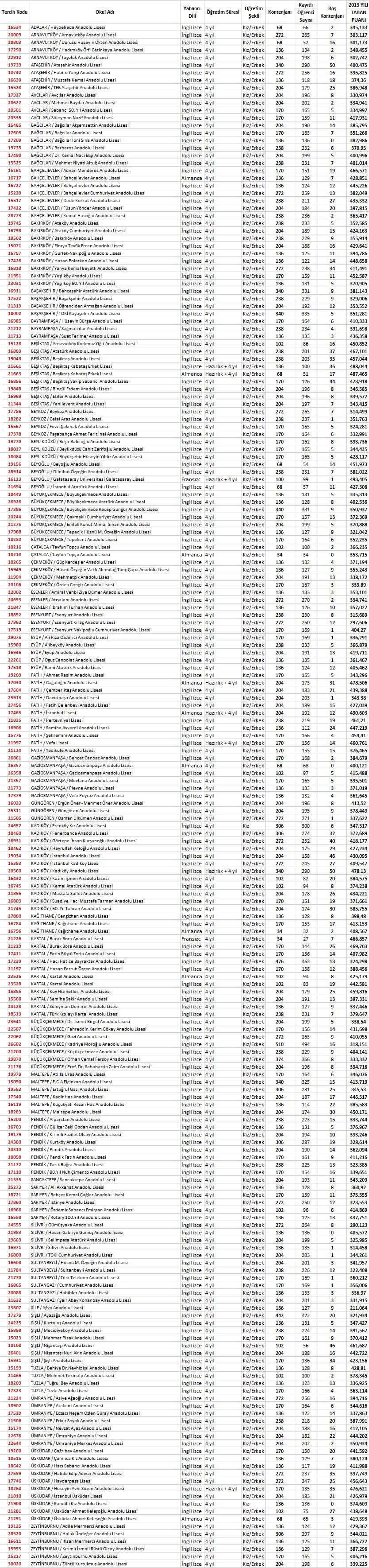 Istanbul Anadolu Liseleri Boş Kontenjan