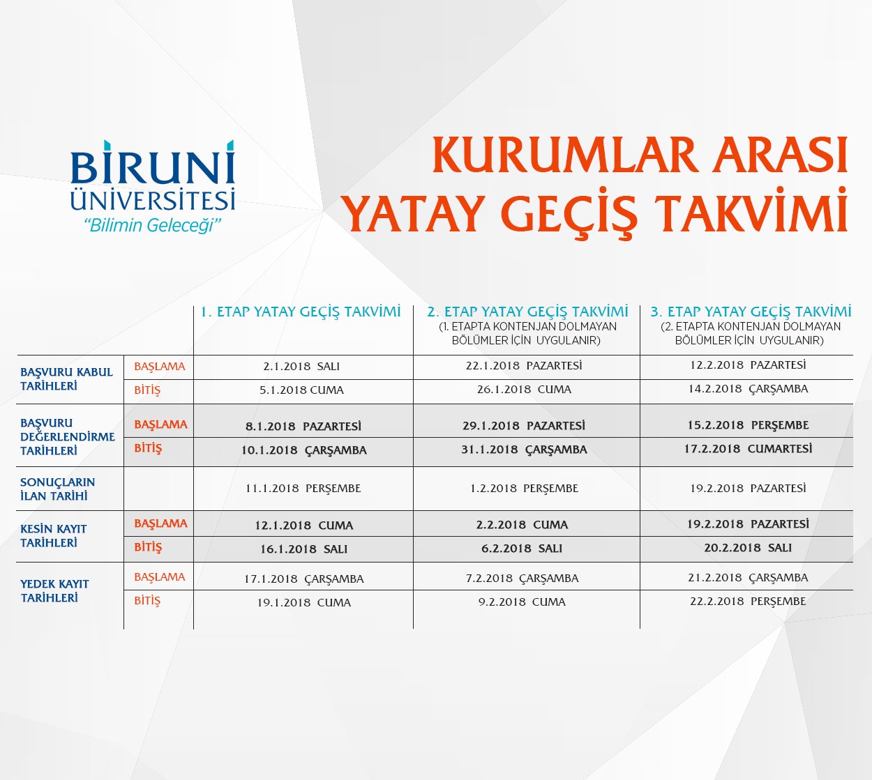 Yatay geçiş başvuruları.