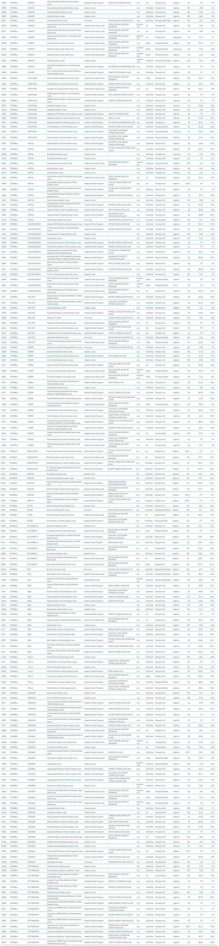 Istanbul Meslek Liseleri Taban Puanlari
