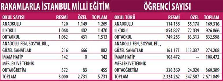 Böylece i̇stanbul daki özel okul sayısı 3 bin 64 e yükselirken devlet okulu sayısı ise 3 bin 63 te kaldı.