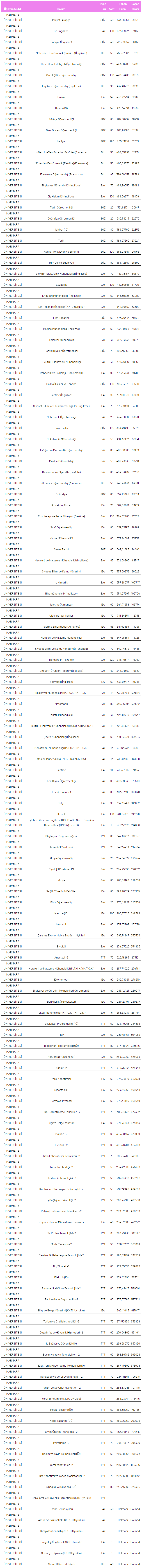Marmara Universitesi 4 Yillik 2 Yillik Taban Puanlari Yuzdelik Dilimler Basari Siralamalari 2020