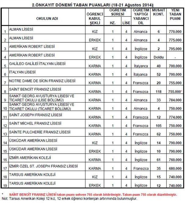 Ozel Lise Taban Puanlari 2019