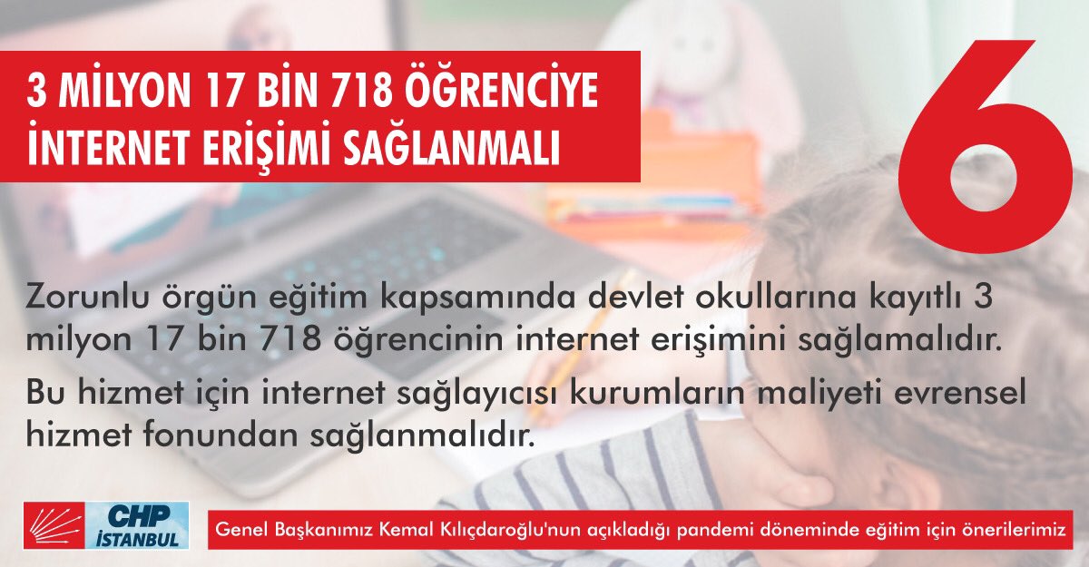 Chp Istanbul Il Baskanligi On Twitter 6 3 Milyon 17 Bin 718 Ogrenciye Internet Erisimi Saglanmali Zorunlu Orgun Egitim Kapsaminda Devlet Okullarina Kayitli 3 Milyon 17 Bin 718 Ogrencinin Internet Erisimini
