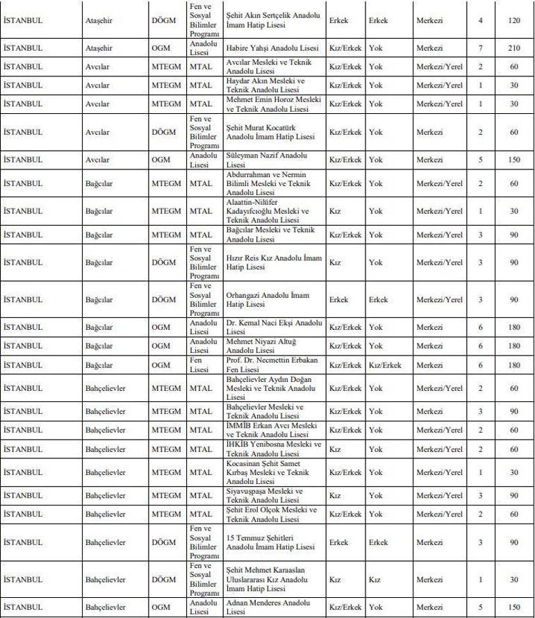 Istanbul Lise Taban Puanlari Ve Kontenjanlari 2019