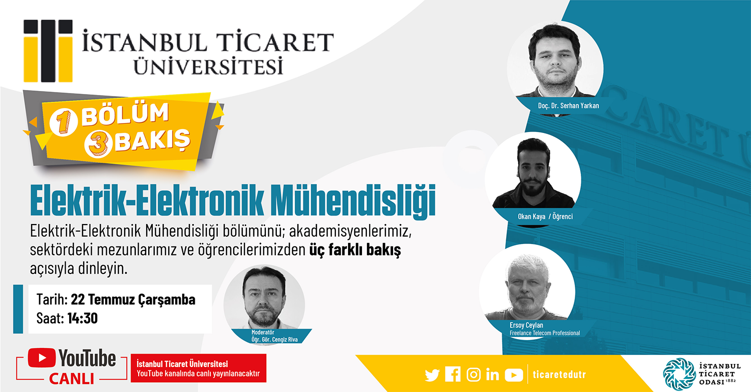 Istanbul Ticaret Universitesi On Twitter Elektrik Elektronik Muhendisligi Bolumunu Akademisyenlerimiz Sektordeki Mezunlarimiz Ve Ogrencilerimizden Uc Farkli Bakis Acisiyla Dinleyin 1bolum3bakis Program Youtube Kanalimizdan Canli Yayinlanacaktir
