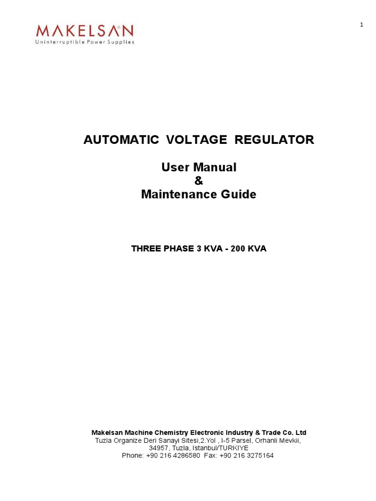 Automatic Voltage Regulator User Manual Maintenance Guide Electric Motor Transformer