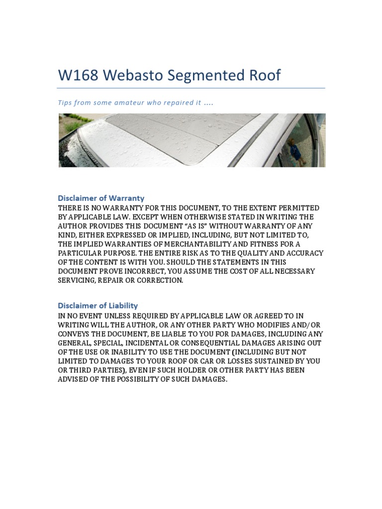 W168 Webasto Repair Disclaimer Screw
