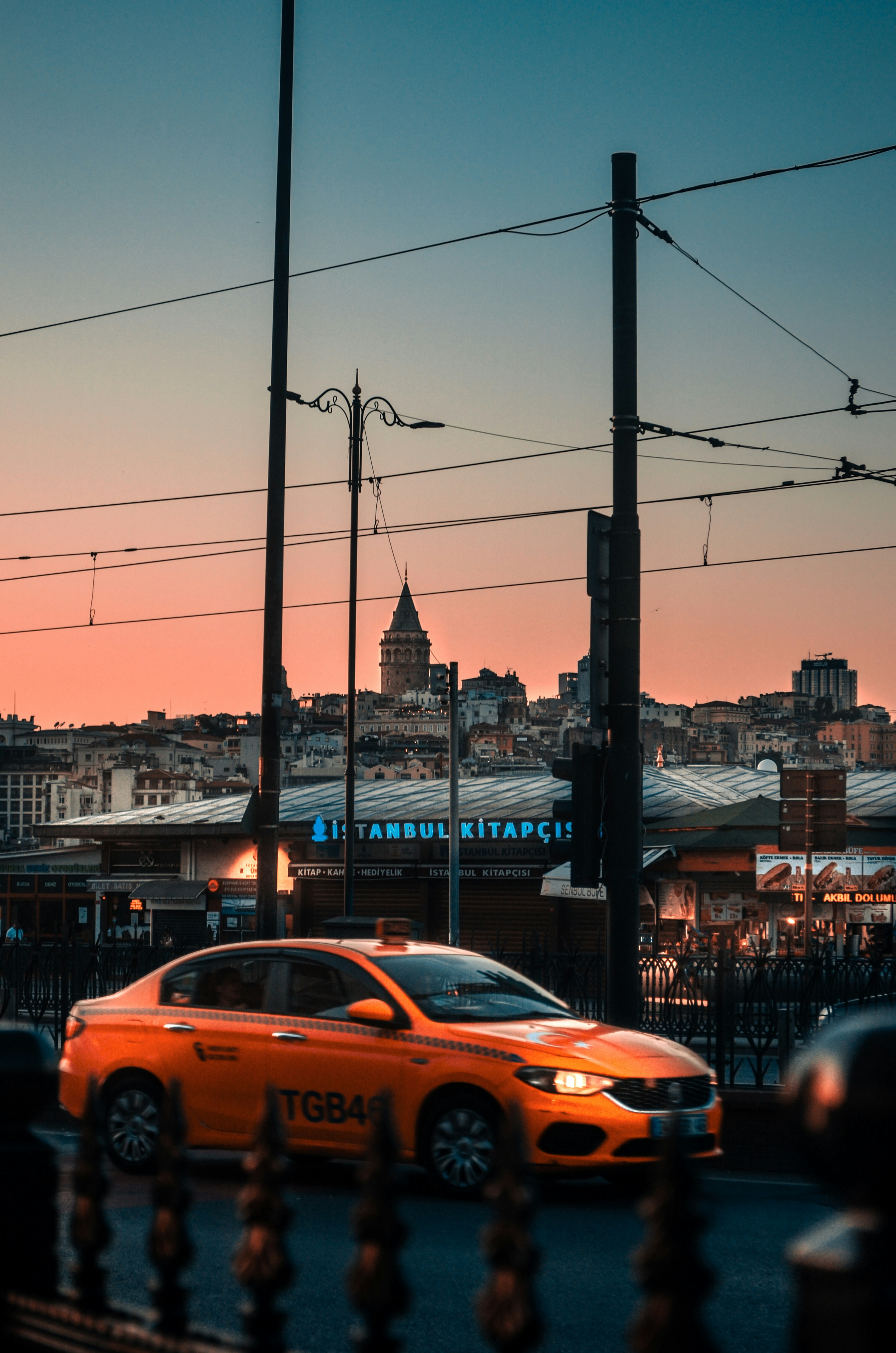 Istanbul Turkey Yellow Taxi Cab Taksi Rushes Across The Galata Bridge Stock Photo Alamy